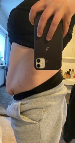 Ick sah jenauso aus. Heute ist der Bauch um den Nabel noch etwas eklig, aber sonst total gut (Tätowierung habe ich gepixelt). Kind 1 ist gerade 4 geworden, Kind 2 ist gerade eins geworden. Das wird schon wieder!