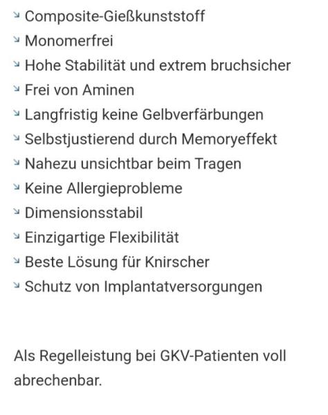 Ich habe meine seit 2017, habe seit vier Wochen das inzwischen dritte Modell, ich kann und will auch nicht mehr ohne. Nächste Woche habe ich dann Kontrolle um den Sitz nach Gebrauch nochmal kontrollieren zu lassen, aber das wird ein kurzer Termin, ich bin sehr zufrieden. Unterkiefer.