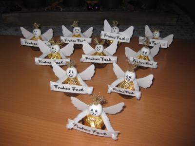Da kommen aus Goldpapier geschnitten Flügel auf die Kugel, auf die Flügel ein kleiner Spruch ![]()