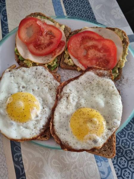 Mein geliebtes Porridge oder anderes Müsli kriege ich überhaupt nicht runter , deswegen immer herzhaft. Vielleicht habt ihr ja ein paar Anregungen. Anbei schicke ich mal ein Foto wie ein typisches Frühstück bei mir aussieht und ja , 4 Scheiben Brot sind kein Problem für mich ( und die Zwillinge )