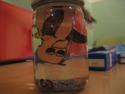 So eine hat mir meine Mam mal gebastelt. Sie hat einen Gummipinguin reingemacht. Aber süß!!!!!!!