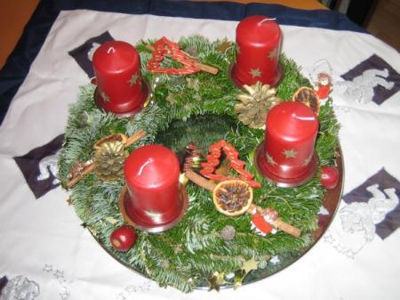 also auf die küchenfensterbank kommt auch so ein "tablett" wie auf deinem link, aber mit roten kerzen und "verziet" mit tannengrün usw. unser küchentisch ist nicht so gross, dass da noch was draufpassen würde. und ins wohnzimmer kommt sowas siehe bild