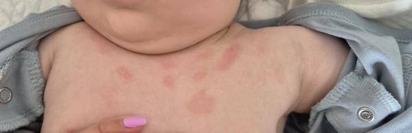 Sehr geehrter Prof. Dr. med. Dietrich Abeck, mein Sohn ist 20 Wochen alt und hat seit ein paar Tagen diese Flecken (siehe Bilder) auf dem Dekolleté. Er sabbert seit sein paar Tagen sehr viel und seit 2 Tagen hat er Zahnfleischschmerzen. Wenn ich ihm meinen saubern Finger anbiete, beißt er sehr stark drauf. Können diese Flecken vielleicht vom Zahnen kommen oder könnte das eher was anderes sein? Vielen lieben Dank.