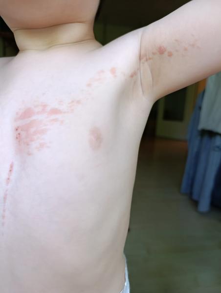 Da wir erst im Oktober einen Termin in der Kinderdermatologie haben wollte ich Sie hierüber fragen wie Ihre Einschätzung zu dem Fall ist und ob es die Möglichkeit gibt die Ausbreitung der dermalen Läsionen einzugrenzen. MfG Nadine