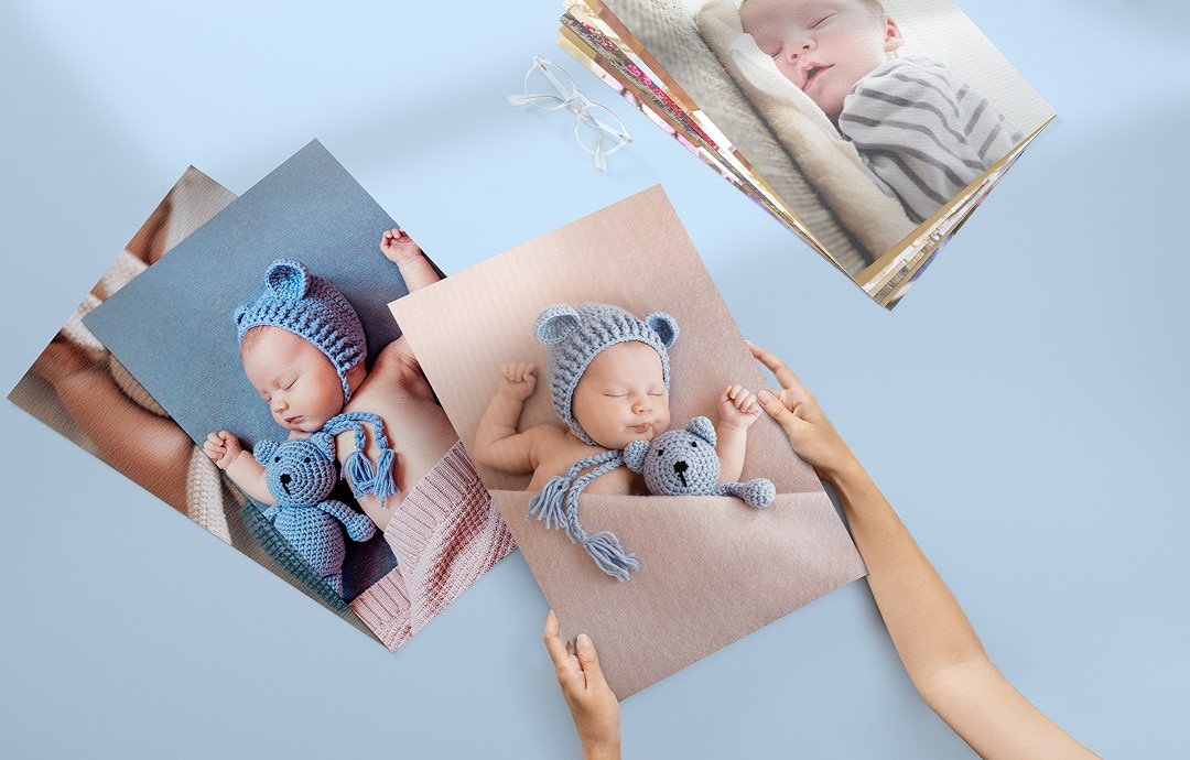 Fotos vom neuen Familienmitglied sind beliebte Fotogeschenke zur Geburt: