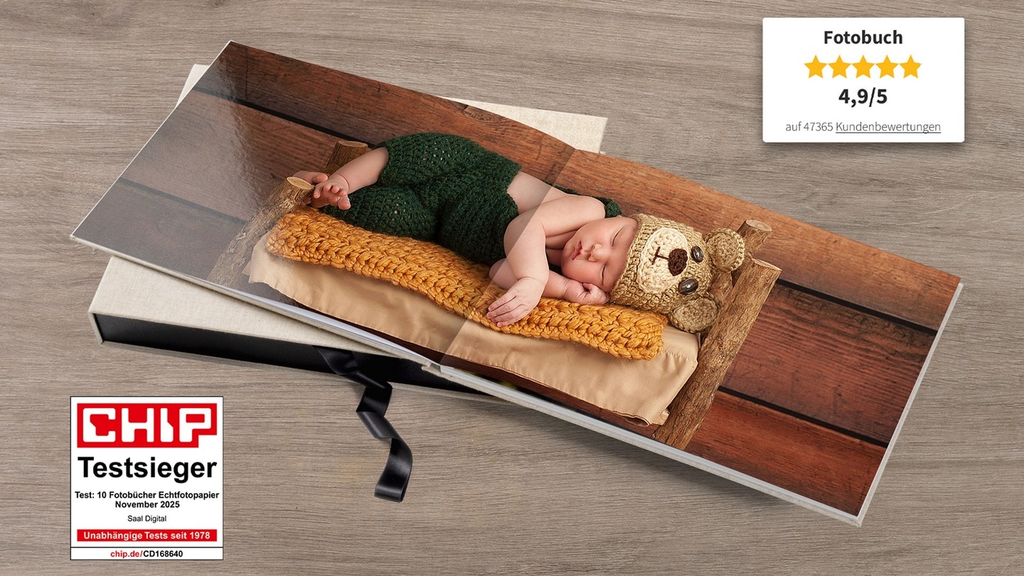 Wer seine Babyfotos drucken, ein Baby Fotobuch gestalten oder persönliche Fotogeschenke zur Geburt sucht, findet bei Saal Digital eine große Auswahl an hochwertigen Möglichkeiten. Qualität, einfache Gestaltung und zuverlässige Lieferung machen es Eltern leicht, die ersten Momente ihres Babys dauerhaft festzuhalten.