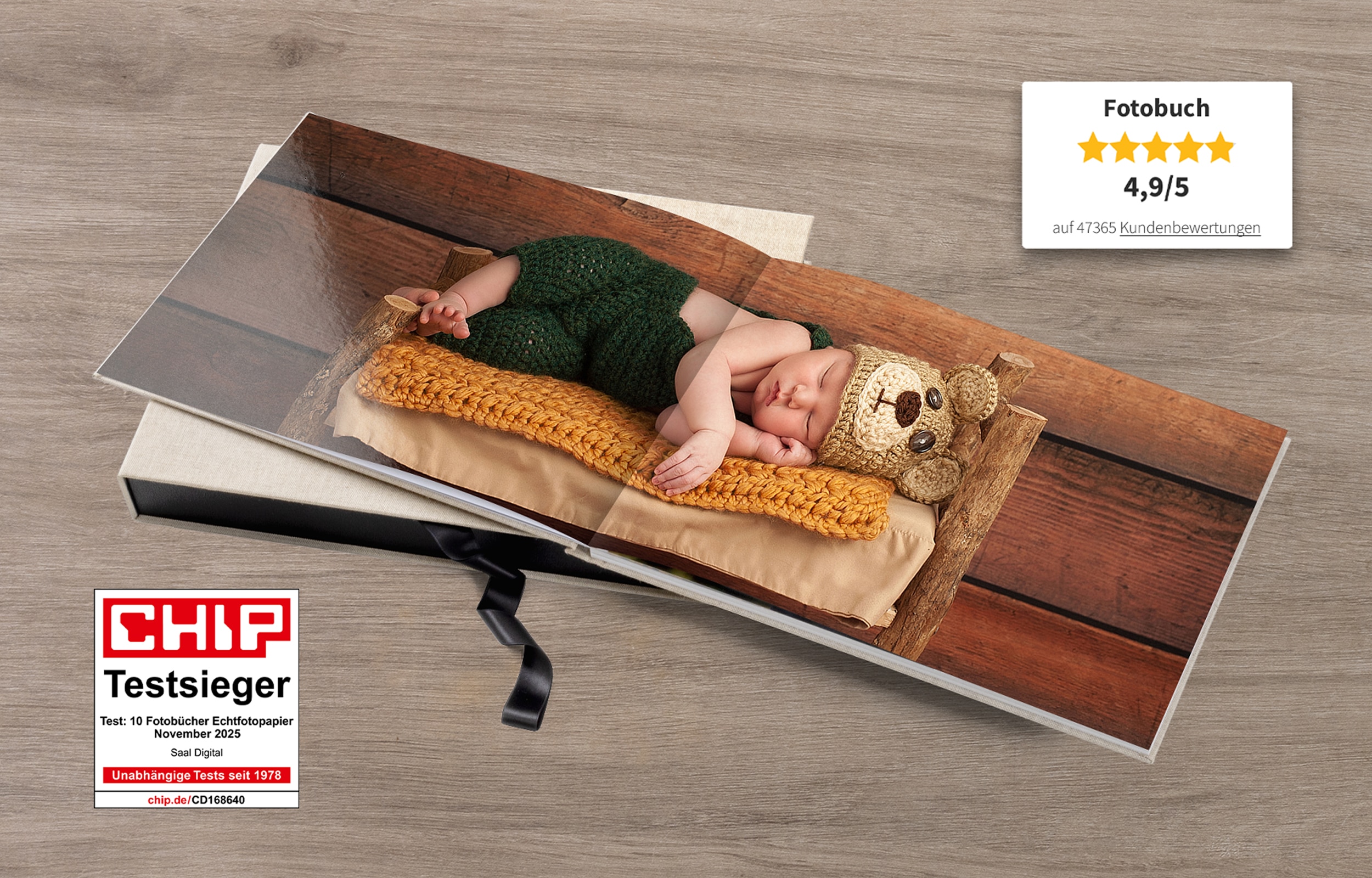 Saal Digital wirbt mit einer sehr hohen Kundenzufriedenheit und legt großen Wert auf Qualität und Service. Für Eltern bedeutet das: möglichst wenig Aufwand, kein Experiment, sondern ein verlässlicher Partner für Babyfotos.