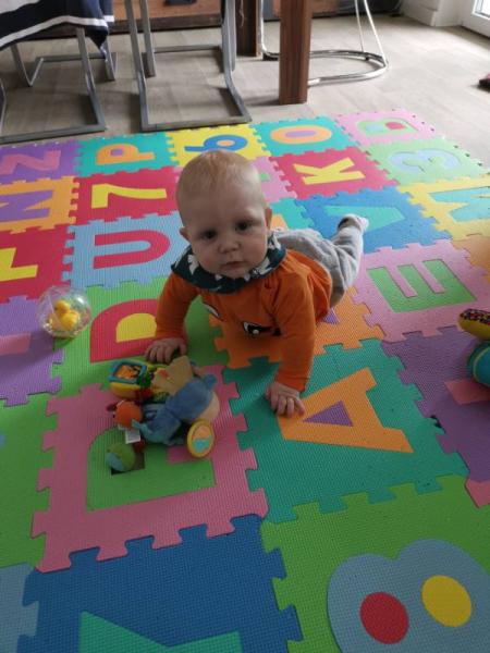 Hallo, Wir haben eine Puzzlematte bestellt, da kann er auch mal umfallen ohne das weh tut