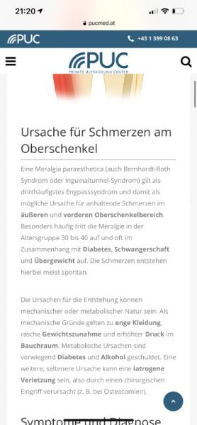 Guten Morgen Ihr Lieben, seit einigen Tagen habe ich so einen brennenden merkwürdig ziehenden Schmerz im äußeren vorderen Oberschenkel, der mal kommt und geht. Hab’s vorher noch nie gehabt und gestern beim aussteigen aus dem Auto war’s auf einmal ganz heftig und ich konnte kaum laufen, es hat sich angefühlt wie ein Stich von einem Riesen Vieh. Der akute Schmerz ist nun verschwunden, allerdings ist er unterschwellig da und das drücken auf den Bereich tut auch etwas weh. Ist euch das bekannt aus der Schwangerschaft? Anbei ein Foto zu dem, was ich im Netz gefunden habe..